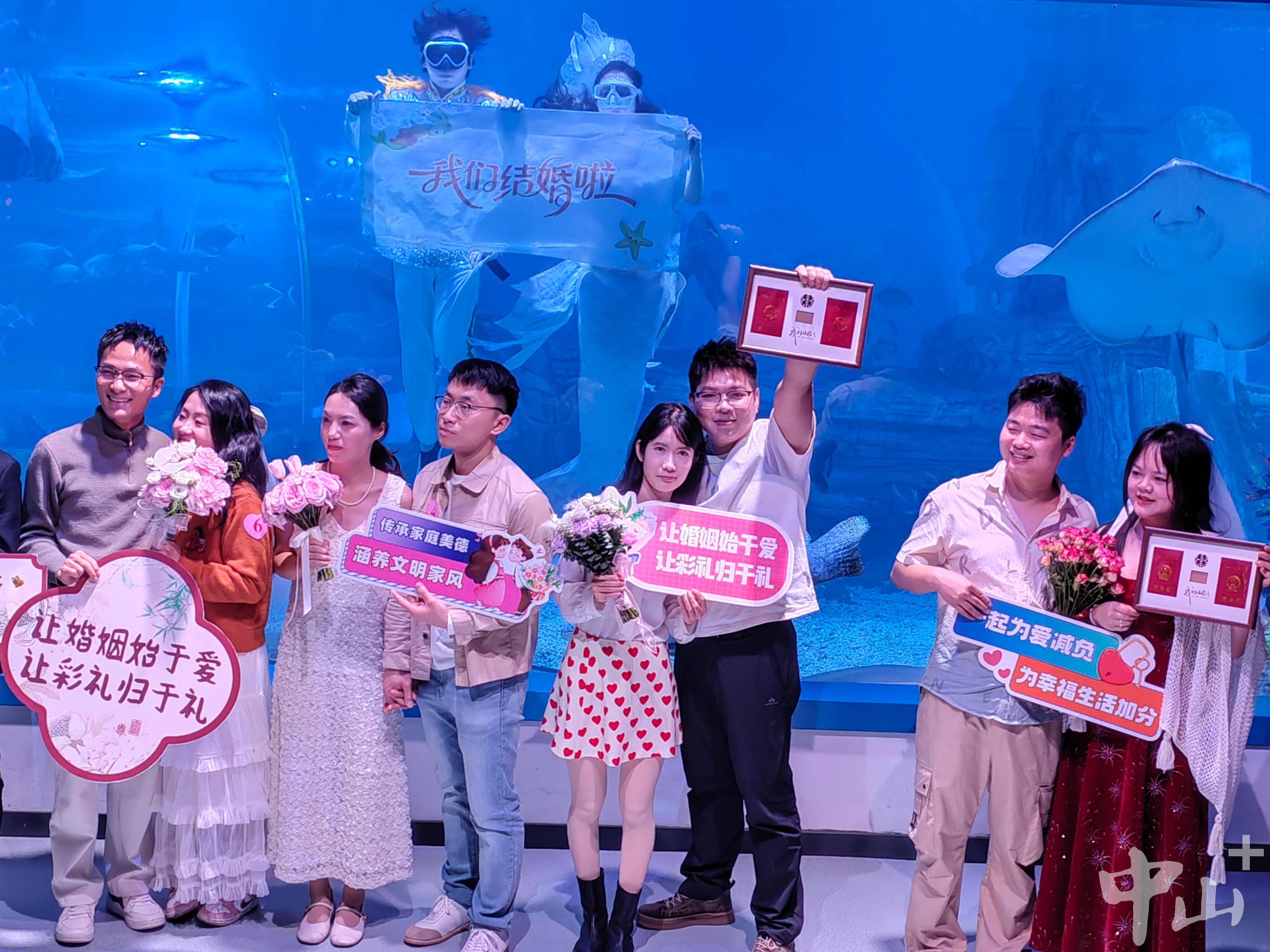 3月3日(農(nóng)歷正月十五),在萬家團(tuán)圓、喜慶祥和的元宵佳節(jié),中山市婚姻登記中心聯(lián)合中山恒遠(yuǎn)海立方環(huán)游城,創(chuàng)新推出“深海見證·摯愛啟程”集體頒證活動(dòng),本次活動(dòng)將婚俗禮儀、元宵民俗與海洋文化融合,為10對(duì)新人打造一場(chǎng)莊重、簡(jiǎn)約、充滿儀式感的新婚盛典,倡導(dǎo)文明風(fēng)俗新風(fēng)尚。