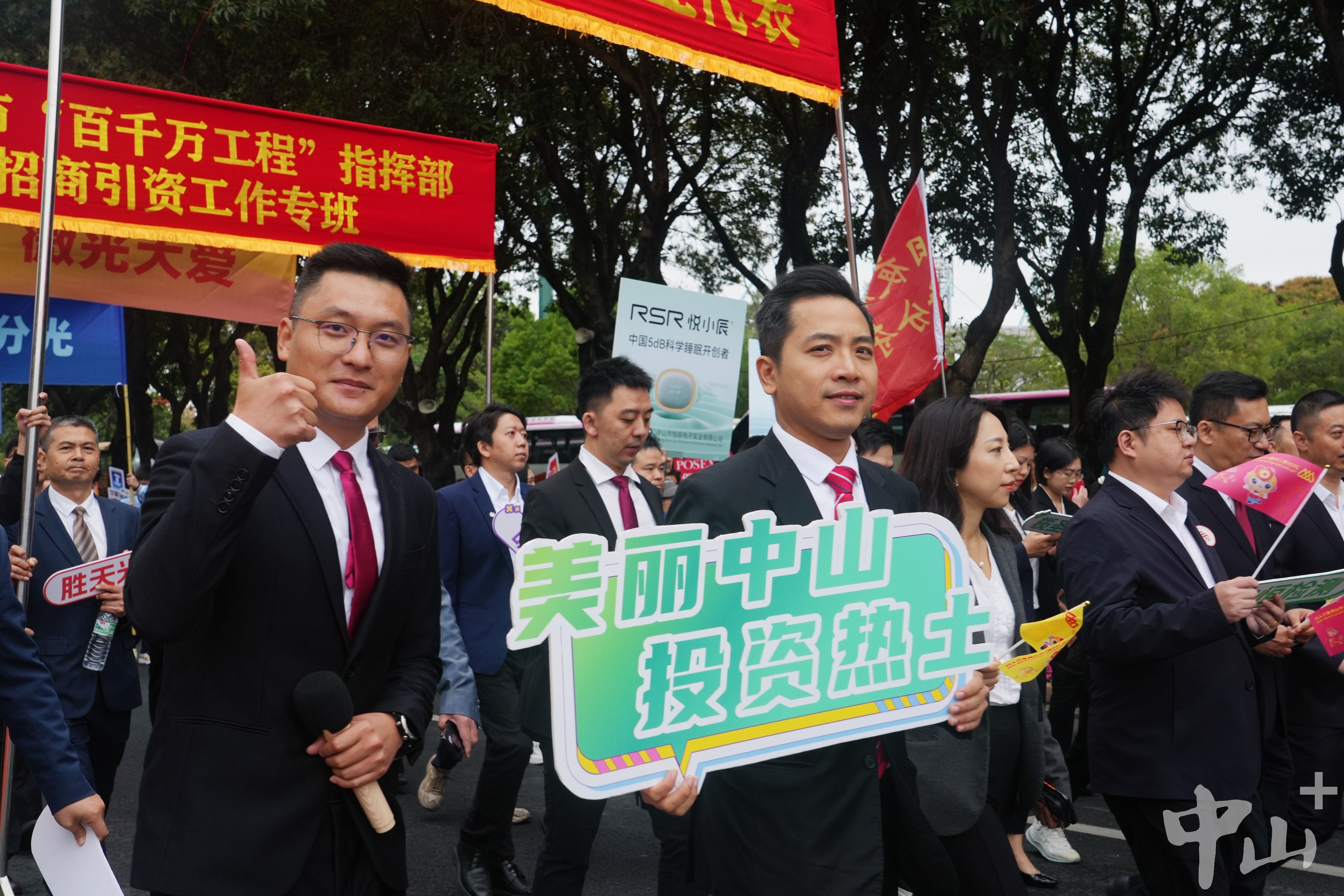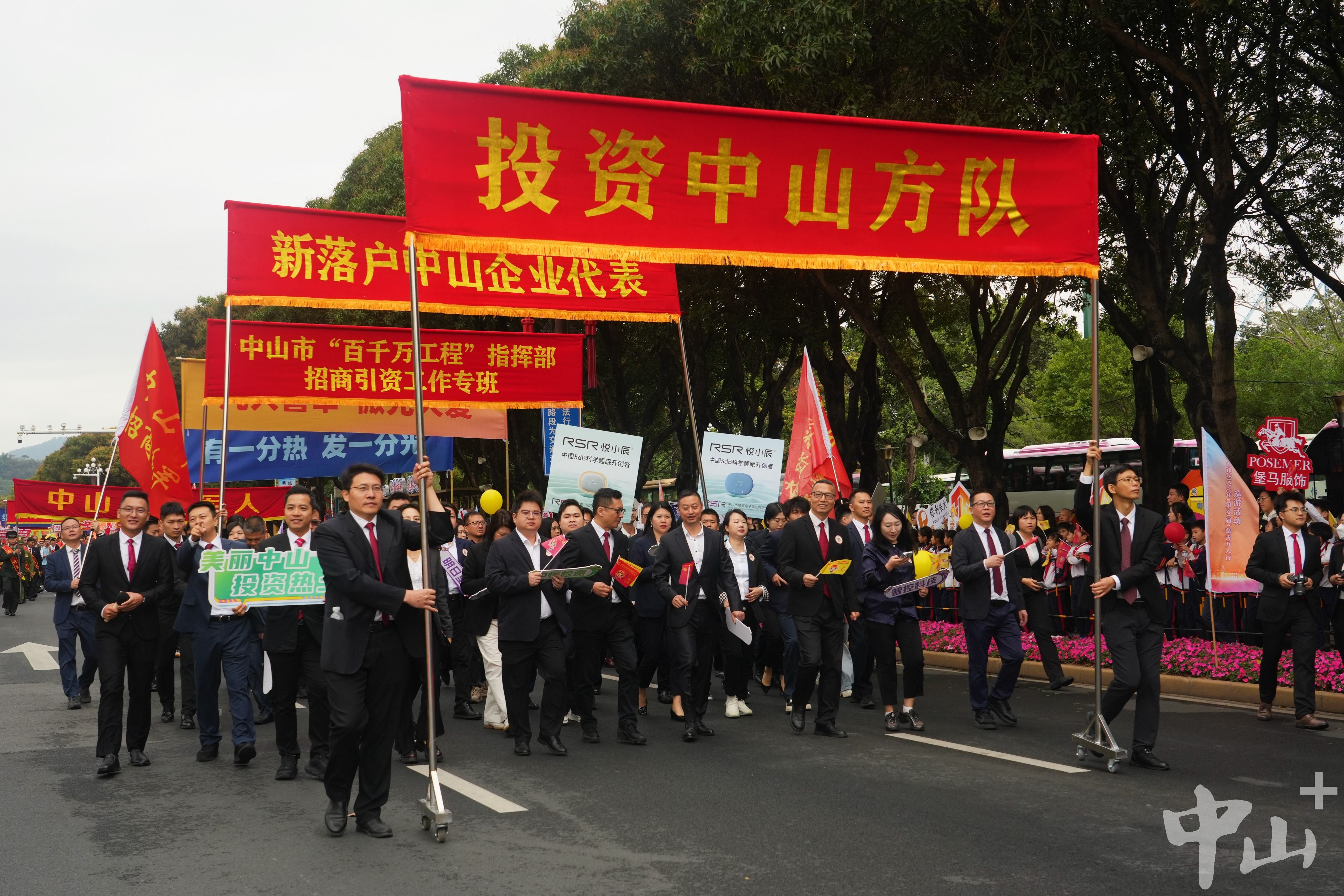 記者看到,投資中山方隊中,除了身著正裝,高舉“日夜兼程奮斗,爭分奪秒奔跑”“美麗中山,投資熱土”標語的招商“鐵軍”,還有近30位新落戶中山的企業(yè)代表。他們手持寫有企業(yè)名稱的標識牌,朝氣蓬勃的形象贏得了沿途市民的陣陣掌聲。