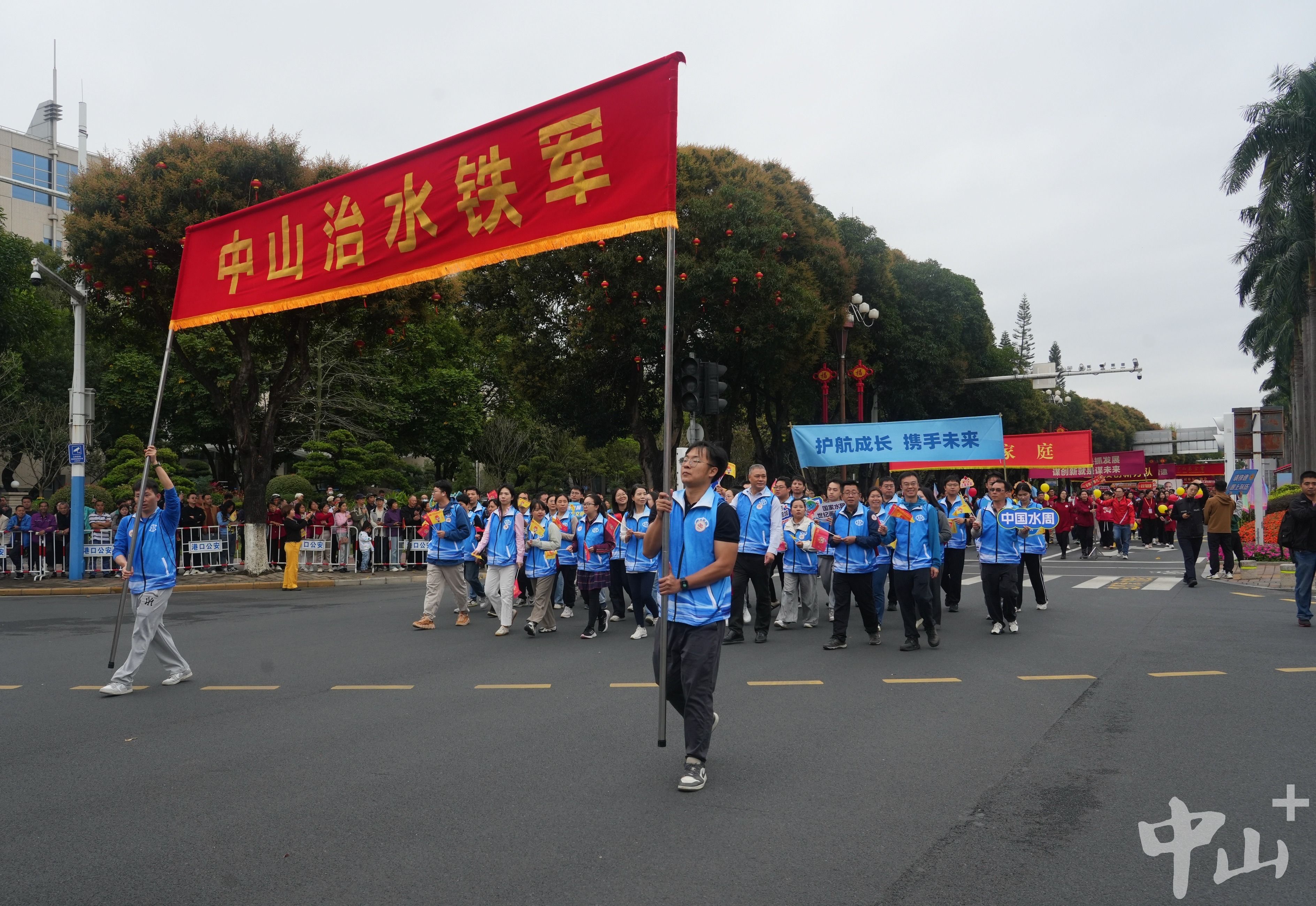 藍色馬甲整齊劃一,標語彩旗迎風飄揚……上午10時左右,由50名治水一線工作人員組成的水治理攻堅方隊,邁著堅定步伐走過人群,成為巡游線上一道清新而有力的風景。