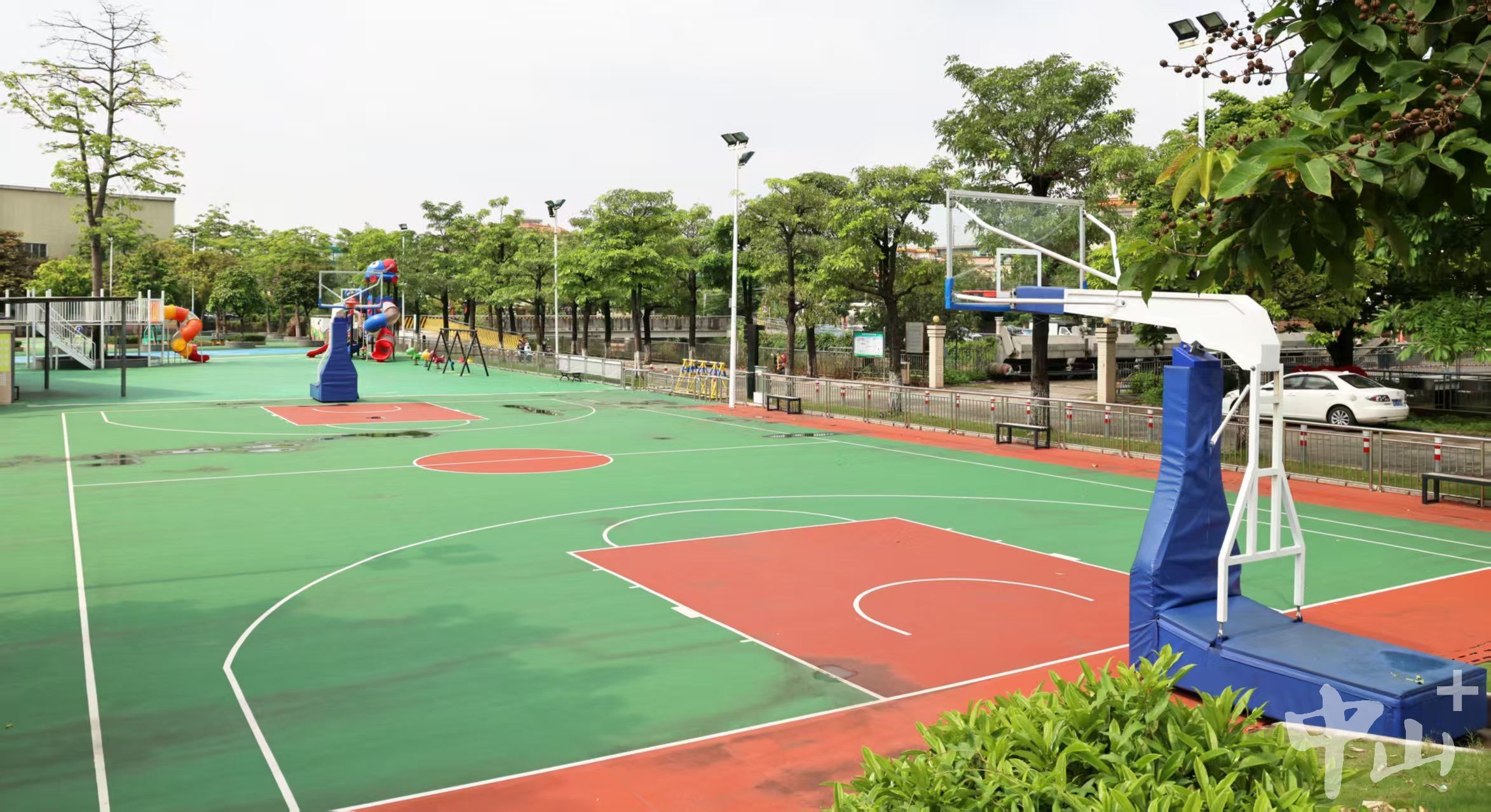 而一路之隔的民安體育公園,經(jīng)過日曬雨淋,曾經(jīng)器材設(shè)施老舊破損,嚴(yán)重影響居民日常使用。如今,經(jīng)過全新規(guī)劃提升,球場地面平整、翻新,樹池、花基修整,各種運動設(shè)施齊全,為居民群眾提供了一個運動休閑的好去處。