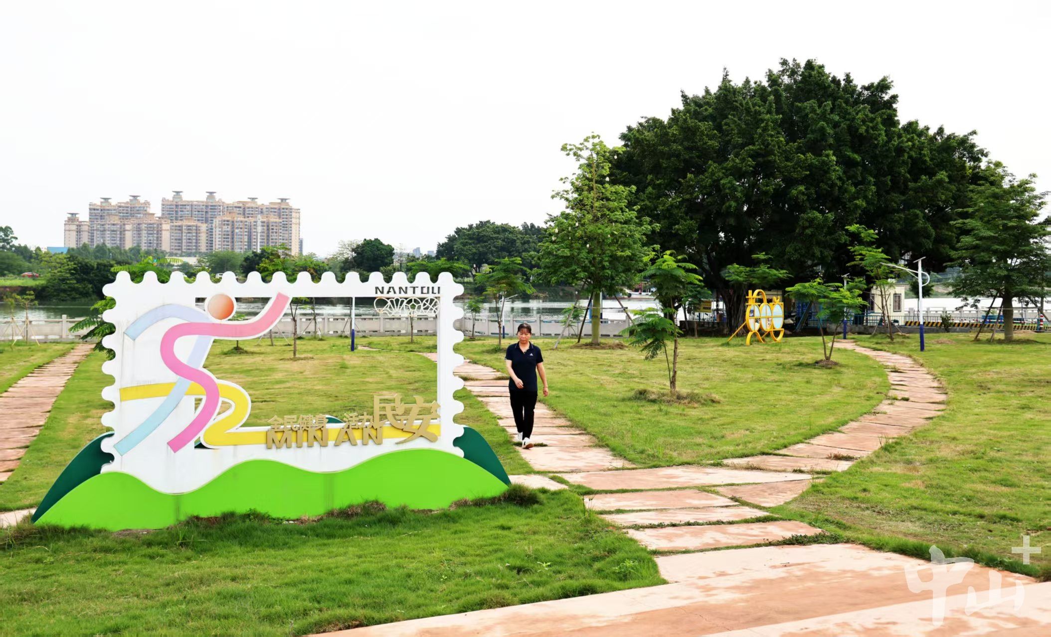 除了服務(wù)本社區(qū)居民,這兩個公園的建成還具有特殊的地理意義。公園緊鄰低沙渡口,這里是南頭鎮(zhèn)與對岸順德容桂人員流動的重要通道,日常人流量較大。過去,渡口周邊的環(huán)境相對雜亂,候船的市民和往來的旅客缺乏一個舒適的休憩場所。