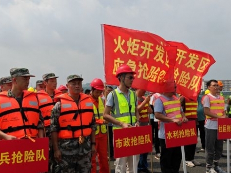 民兵搶險隊積極參加鎮(zhèn)街三防應(yīng)急演練