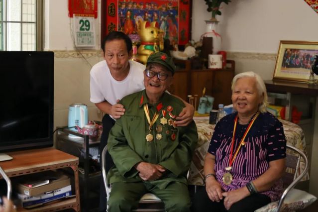 中山市抗日老戰(zhàn)士鄭棣揚,一身老式軍裝,胸前掛著一枚枚斑駁的勛章,年過九旬的他激動地向白石環(huán)小學的學生們介紹這枚抗戰(zhàn)勝利70周年的紀念章,講述抗戰(zhàn)時期驚心動魄的故事,學生們認真聆聽,謹記在心,將他們對鄭爺爺的敬仰之情凝注于手中的畫筆,用水墨的形式畫出他們心中的英雄。