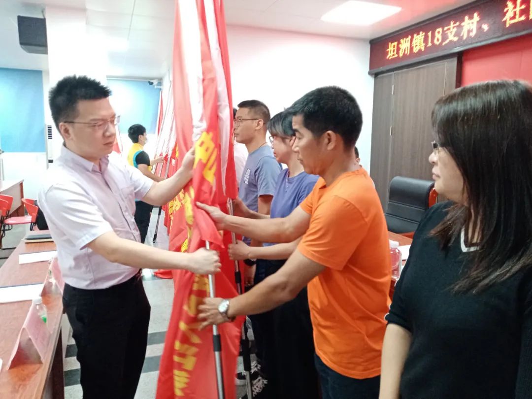 為號(hào)召更多退役軍人積極投身志愿服務(wù)活動(dòng),更好弘揚(yáng)“奉獻(xiàn)、友愛、互助、進(jìn)步”的志愿精神,激勵(lì)廣大退役軍人“退役不退志,退伍不褪色”。7月8日,坦洲鎮(zhèn)舉行退役軍人紅旗志愿服務(wù)隊(duì)授旗儀式,坦洲副鎮(zhèn)長(zhǎng)鄭晨暉到會(huì)致辭,并向來自全鎮(zhèn)各村、社區(qū)及擁軍愛國(guó)企業(yè)的18支退役軍人紅旗志愿服務(wù)隊(duì)授旗。