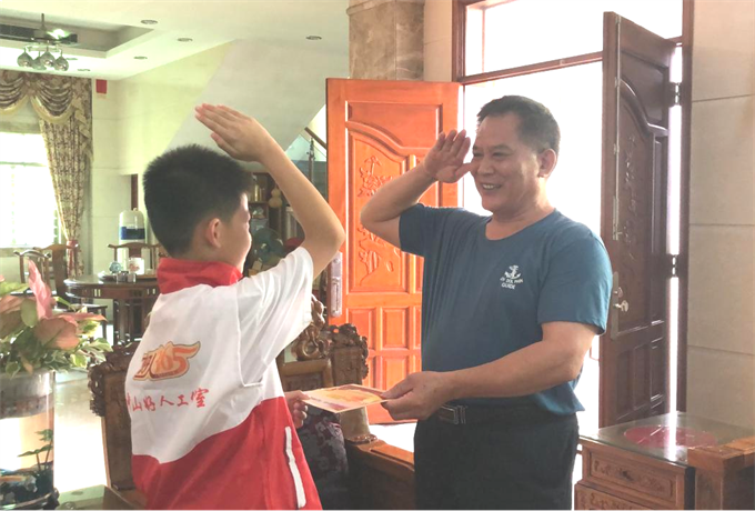 ▲中山好人工作室、小欖愛心助學(xué)團(tuán)志愿者上門走訪慰問轄區(qū)內(nèi)部分退役軍人。 啟動(dòng)儀式后,小欖鎮(zhèn)愛心助學(xué)團(tuán)的親子志愿者們分成多個(gè)小組,對(duì)該鎮(zhèn)100位困難退役軍人及部分烈士家屬進(jìn)行走訪慰問,為老兵們送上愛心慰問品及節(jié)日問候。 據(jù)悉,“八一”期間,小欖鎮(zhèn)將積極發(fā)動(dòng)各部門、各單位深入開展擁軍慰問、老兵觀影會(huì)、座談會(huì)、茶話會(huì)等活動(dòng),增進(jìn)軍政軍民魚水情誼,廣泛開展優(yōu)秀退役軍人及其先進(jìn)事跡等宣傳教育,大力營造擁軍優(yōu)屬濃厚氛圍,以真情和實(shí)際行動(dòng)讓退役軍人有更多榮譽(yù)感幸福感。