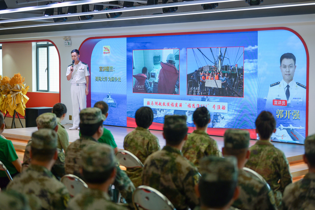 郭開強(qiáng):勇闖大洋 為國(guó)爭(zhēng)光 2008年12月,應(yīng)聯(lián)合國(guó)授權(quán)請(qǐng)求,奉中央軍委命令,南海艦隊(duì)武漢艦、海口艦、微山湖艦組成第1批護(hù)航編隊(duì),拉開了人民海軍舉世矚目的亞丁灣、索馬里護(hù)航序幕,這是自600多年前鄭和下西洋以來,中國(guó)真正意義上的遠(yuǎn)海非戰(zhàn)爭(zhēng)軍事行動(dòng),開啟了人民海軍從“黃水”駛向“藍(lán)水”的壯麗航程。 91878部隊(duì)郭開強(qiáng)干事為大家?guī)碇黝}宣講《勇闖大洋 為國(guó)爭(zhēng)光》。 郭開強(qiáng)介紹—— 迄今為止,人民海軍已累計(jì)派出44批100余艘次艦艇參加亞丁灣、索馬里海域護(hù)航,完成1500多批7000余艘中外船舶護(hù)航任務(wù),解救、接護(hù)各類船舶近百艘,其中外國(guó)船舶超過50%。 護(hù)航官兵一次次直面生死、一次次化解危機(jī)、一次次挑戰(zhàn)極限,用忠誠(chéng)與奉獻(xiàn)、責(zé)任與擔(dān)當(dāng),彰顯大國(guó)海軍形象,譜寫了人民海軍邁向世界一流海軍的新時(shí)代壯歌。 張長(zhǎng)城分享軍旅故事。記者 易承樂 攝