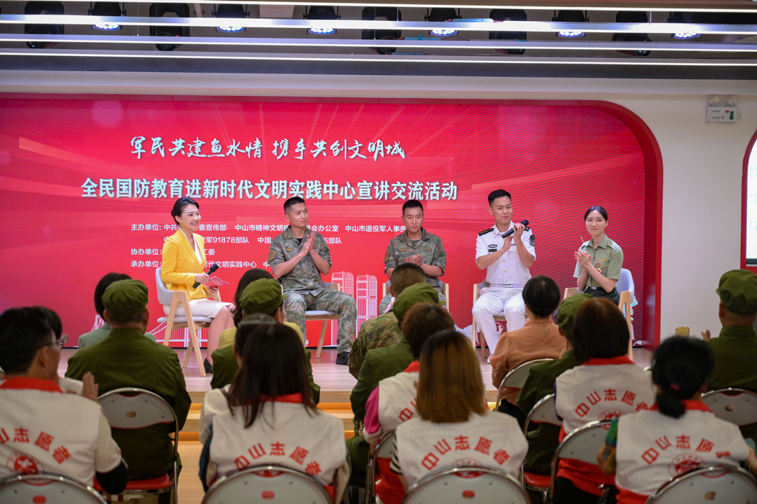 5月18日下午,全民國(guó)防教育進(jìn)新時(shí)代文明實(shí)踐中心宣講交流活動(dòng)在中山市民眾街道新時(shí)代文明實(shí)踐中心舉行,退役軍人代表、基層群眾、村干部以及受邀出席的中國(guó)人民解放軍91878部隊(duì)、69316部隊(duì)官兵代表等200余人參加活動(dòng)。  活動(dòng)現(xiàn)場(chǎng)。記者 易承樂 攝