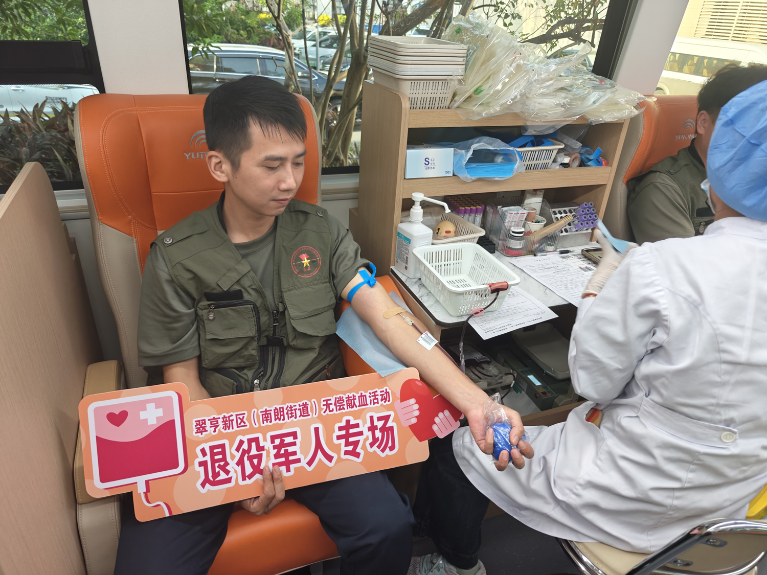 為弘揚(yáng)“退役不褪色、退伍不退志”的軍人精神,保障臨床用血需求,傳遞社會(huì)正能量,2025年6月12日,南朗街道武裝部聯(lián)合退役軍人服務(wù)中心組織開展了“熱血鑄忠誠,奉獻(xiàn)顯擔(dān)當(dāng)”無償獻(xiàn)血活動(dòng)專場。數(shù)十名退役軍人志愿者齊聚一堂,以實(shí)際行動(dòng)詮釋了軍人的責(zé)任與擔(dān)當(dāng),為保障臨床用血貢獻(xiàn)力量。 活動(dòng)當(dāng)天,退役軍人志愿者們身著綠色馬甲,在工作人員的引導(dǎo)下有序完成登記、體檢、獻(xiàn)血等環(huán)節(jié)。他們中既有退役不久的青年軍人,也有多年堅(jiān)持獻(xiàn)血的“老將”。一位參與獻(xiàn)血的退役軍人表示:“獻(xiàn)血雖然是一件小事,但它能挽救一個(gè)生命,甚至是一個(gè)家庭的希望。作為退役軍人,我們有責(zé)任為社會(huì)作出更多貢獻(xiàn)?!?br/>