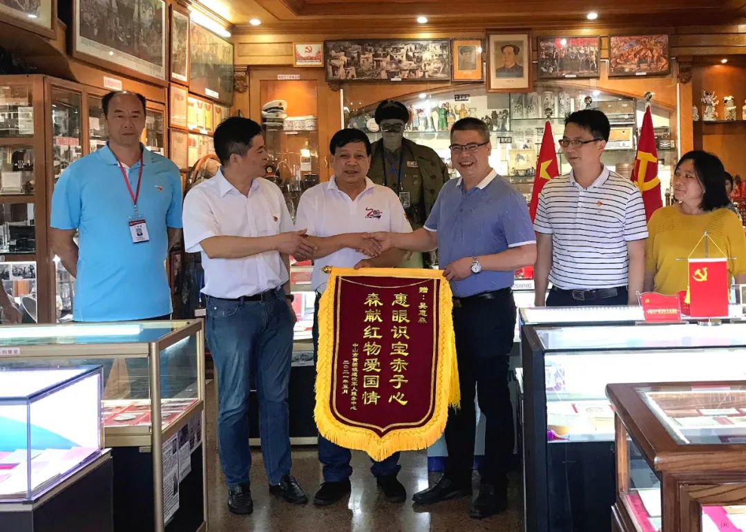▲黃圃鎮(zhèn)退役軍人服務(wù)中心向吳惠森贈(zèng)送錦旗 座談會(huì)結(jié)束后,與會(huì)人員參觀了吳惠森“家庭軍事博物館”,開展“老兵永遠(yuǎn)跟黨走·重溫紅色故事”主題黨日活動(dòng),感悟當(dāng)今生活來(lái)之不易,銘記歷史、勿忘國(guó)恥,引導(dǎo)廣大退役軍人增強(qiáng)聽黨話、跟黨走的行動(dòng)自覺(jué),充分營(yíng)造軍愛(ài)民,民擁軍,軍民魚水一家親的良好社會(huì)氛圍,提升黃圃鎮(zhèn)退役軍人工作服務(wù)水平,以良好的工作成效慶祝中國(guó)共產(chǎn)黨成立100周年。