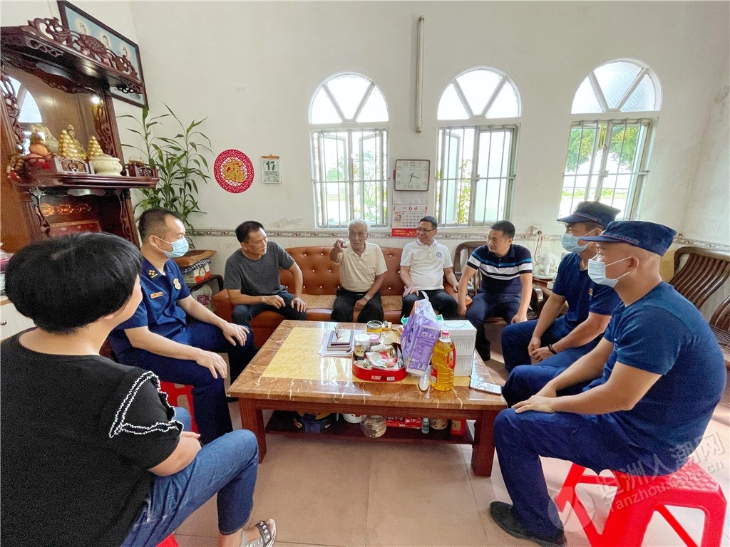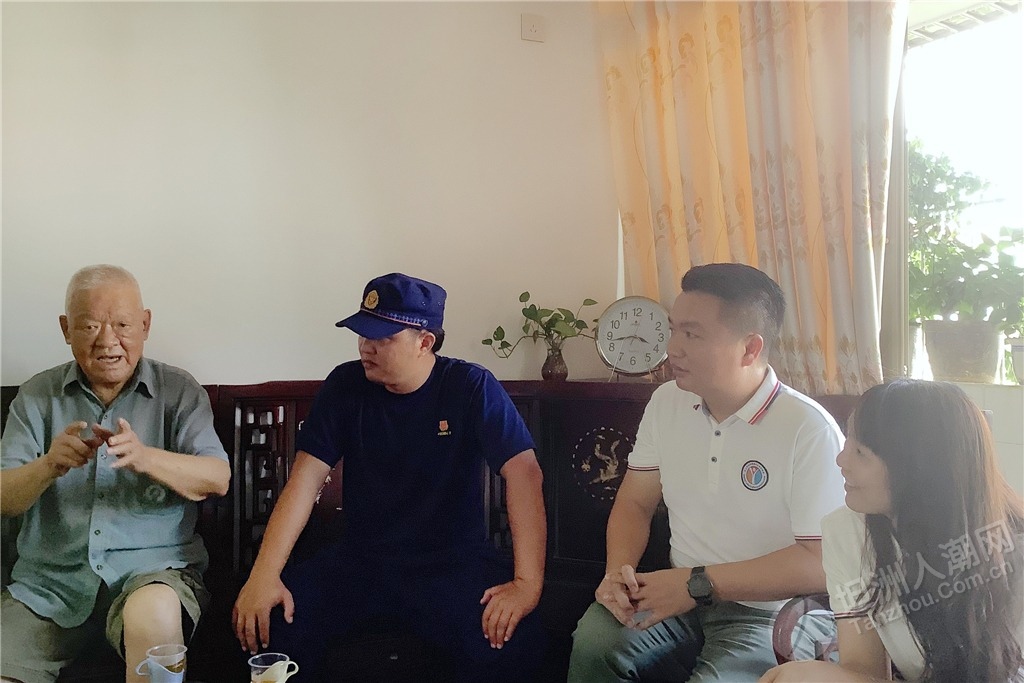 隨后,慰問組還邀請參戰(zhàn)老兵鄭金洪走進中山市消防救援支隊坦洲大隊講述革命故事,給與會黨員干部和部分基干民兵送上了一堂生動、鮮活的紅色教育黨課,讓全體人員感受參戰(zhàn)老兵的精神洗禮?!霸谝淮尾筷犠鲬?zhàn)時,我和另一名貴州籍的戰(zhàn)友去攻打一個火力點,我們一起在山腳的一塊石頭處掩護,但根據(jù)我以往的作戰(zhàn)經(jīng)驗,我覺得這里不安全,于是趕緊對他說不要待在那塊石頭那,也不要站立,趕緊滾到下面的公路去;好在他聽從我的命令后,迅速地做出反應。當我們到達安全地方時,長舒一口氣,一直聽到有子彈嗖嗖嗖地從那塊石頭附近穿梭而過;而那位戰(zhàn)友感慨地跟我說‘班長,好在你迅速做出反應,不然我在那不是受傷就是死了?!编嵔鸷橐杂H身經(jīng)歷聲情并茂地向大家講述了當年戰(zhàn)火紛飛的戰(zhàn)斗經(jīng)歷。 ▲慰問組一行聆聽烈士遺屬陳北根講述他父親生前與敵斗爭的英雄故事。