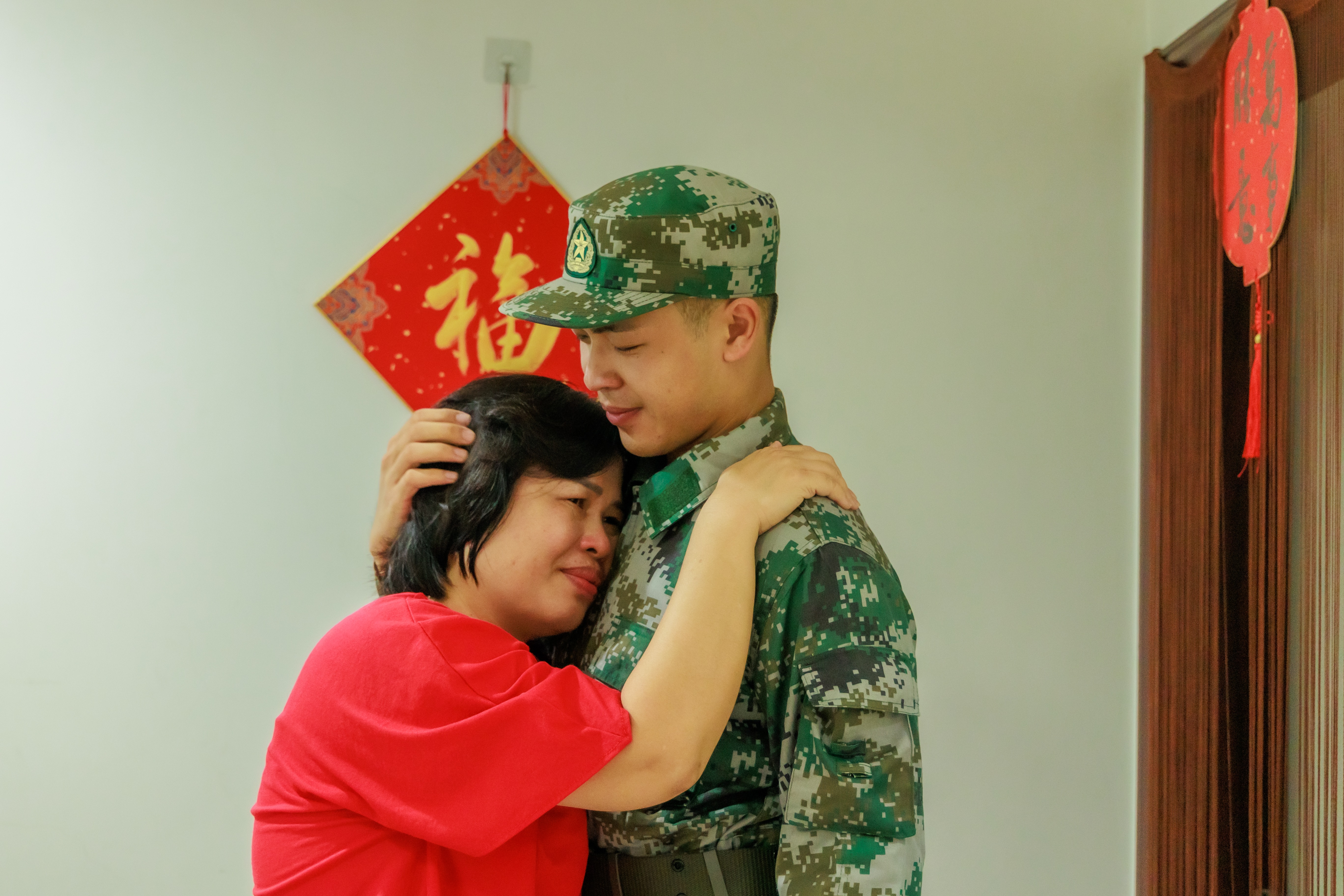 楊尚霖與母親惜別。馬衛(wèi)星 攝