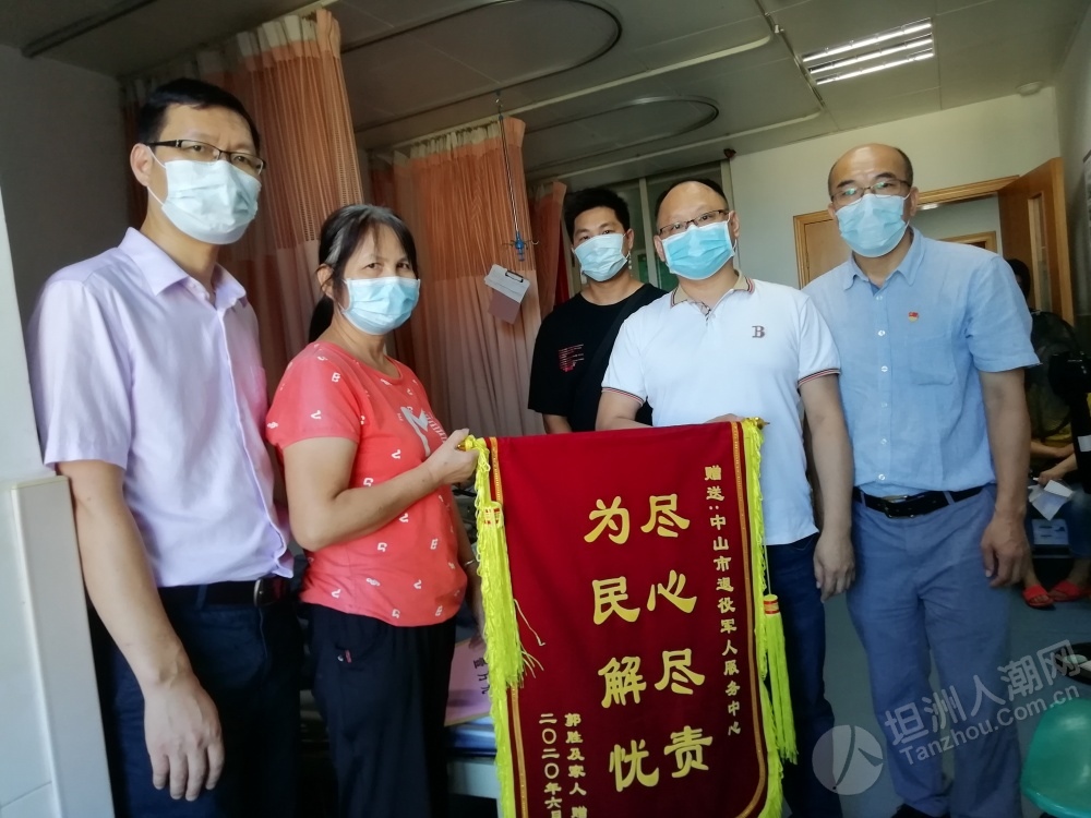 近日,中山市首個應(yīng)急救助資金申請已通過省退役軍人事務(wù)廳審核,坦洲籍退役軍人郭叔獲得了應(yīng)急救助資金1萬元。該筆應(yīng)急救助資金于日前由省退役軍人事務(wù)廳按照規(guī)定程序撥付到申請人個人賬戶。 6月18日,中山市、坦洲鎮(zhèn)兩級退役軍人服務(wù)中心及坦洲社會事務(wù)局相關(guān)負(fù)責(zé)人一行到坦洲醫(yī)院對郭叔進(jìn)行慰問,告知他申請的應(yīng)急救助資金已由省退役軍人事務(wù)廳撥付到賬,叮囑他要聽從醫(yī)生的囑咐,積極配合康復(fù)治療,樹立起戰(zhàn)勝疾病的勇氣和信心。郭叔家人特地制作了一面錦旗送到中山市退役軍人服務(wù)中心主任張波手中,由衷表達(dá)了對市、鎮(zhèn)、村各級退役軍人服務(wù)中心(站)的感激之情。
