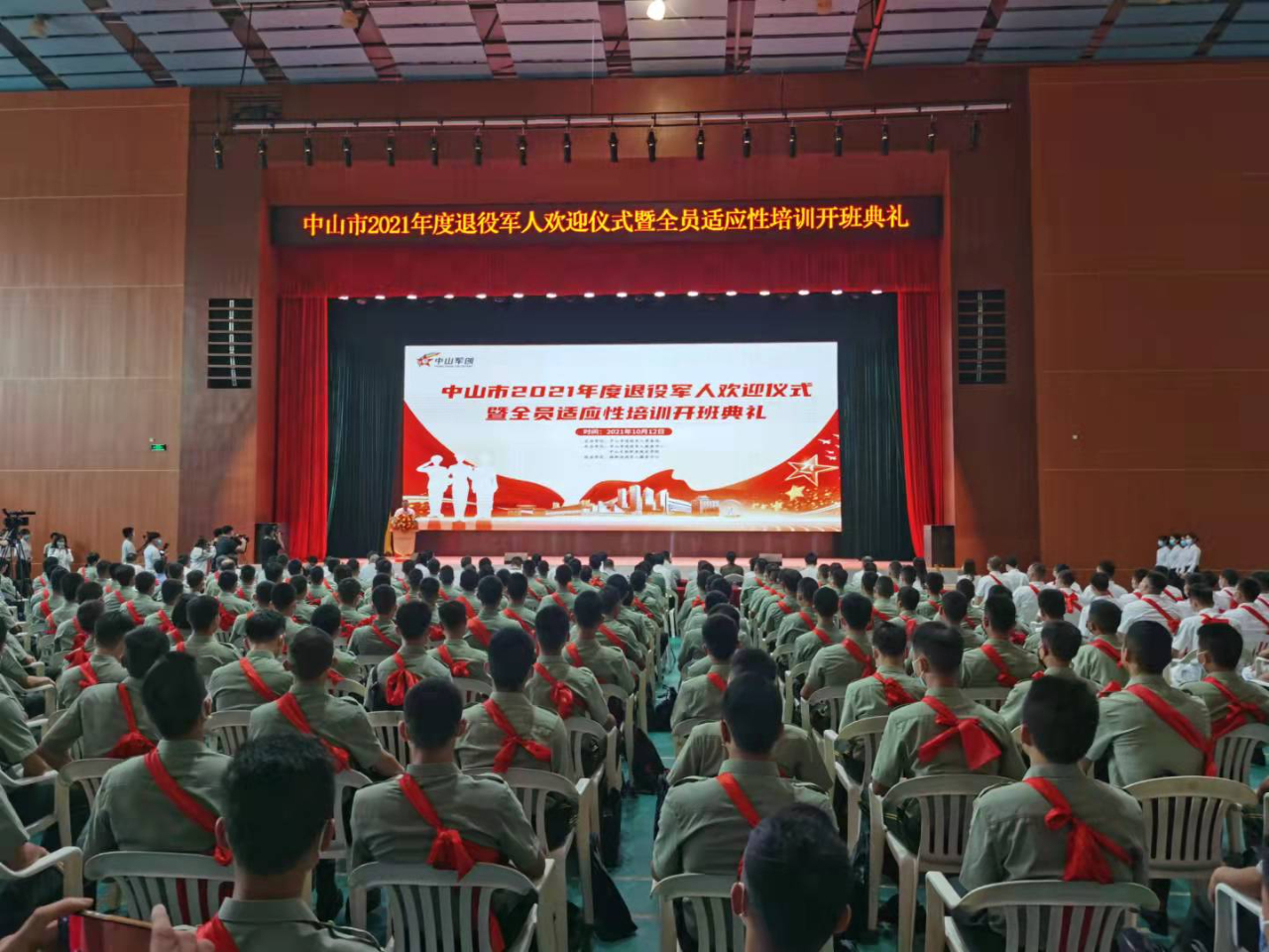 10月12日,在嘹亮的軍歌聲中,中山市退役軍人事務(wù)局在中山火炬職業(yè)技術(shù)學(xué)院為今年返鄉(xiāng)的500多名退役軍人舉行了隆重的退役軍人歡迎儀式,副市長(zhǎng)劉云梅出席活動(dòng)并致辭。 退役軍人歡迎儀式邀請(qǐng)了2021年度優(yōu)秀退役軍人代表伍嘉怡同志和優(yōu)秀退役軍人創(chuàng)業(yè)代表曹鵬同志發(fā)言,并正式啟動(dòng)中山市退役軍人就業(yè)創(chuàng)業(yè)聯(lián)盟,中山火炬職業(yè)技術(shù)學(xué)院黨委委員、副院長(zhǎng)岳巧云做了適應(yīng)性培訓(xùn)開(kāi)班動(dòng)員講話。