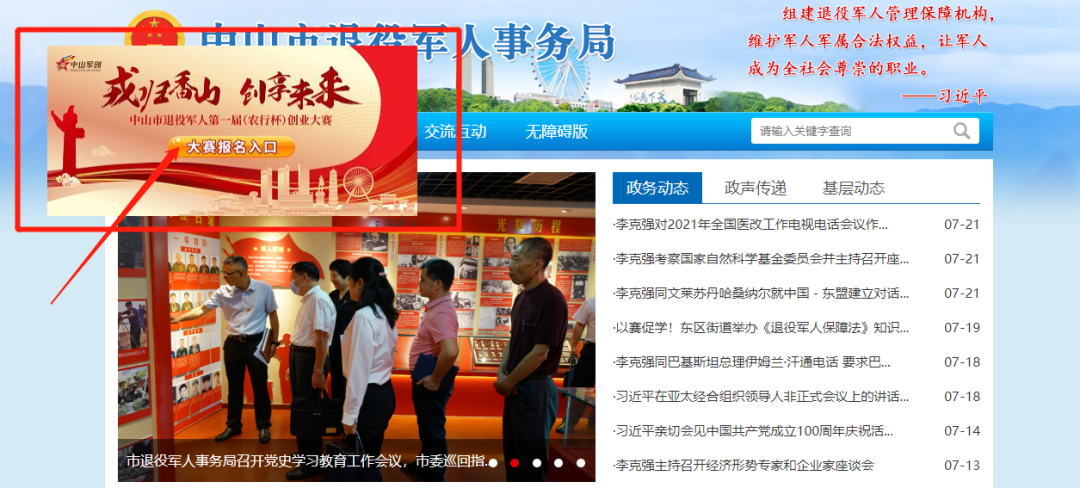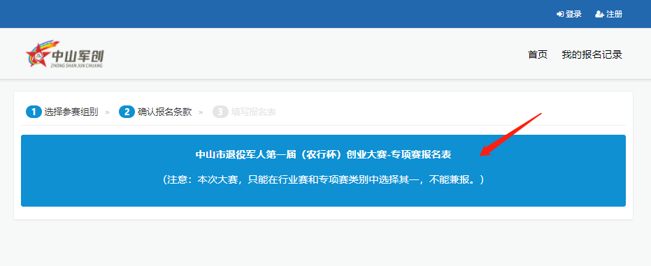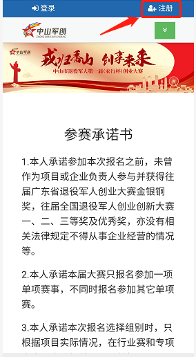 由中山市退役軍人事務(wù)局、中山市人力資源和社會(huì)保障局共同舉辦,主題為“戎歸香山 創(chuàng)享未來”的中山市退役軍人第一屆(農(nóng)行杯)創(chuàng)業(yè)大賽正在火熱報(bào)名中。為幫助廣大退役軍人更高效、準(zhǔn)確地報(bào)名參加大賽,制作了以下指引,希望對廣大參賽者有所幫助。 中山市退役軍人第一屆(農(nóng)行杯)創(chuàng)業(yè)大賽報(bào)名方式有以下三種: 一、官方網(wǎng)站報(bào)名 二、微信公眾號(hào)報(bào)名 三、郵箱報(bào)名 官方網(wǎng)站報(bào)名 01 登錄大賽官方網(wǎng)站 在瀏覽器輸入網(wǎng)址:http://tyjr.zs.gov.cn/,點(diǎn)擊飄窗【大賽報(bào)名入口】進(jìn)入用戶登錄界面。如圖1所示: