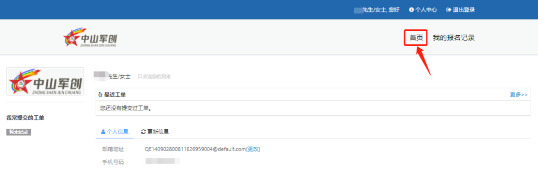 圖4 03 登錄信息 注冊成功后自動(dòng)跳轉(zhuǎn)至登錄界面,填寫相應(yīng)信息后登錄賬號(hào),進(jìn)入個(gè)人中心首頁,將系統(tǒng)默認(rèn)郵箱更改為個(gè)人常用郵箱,方便大賽執(zhí)委會(huì)通知發(fā)送。如圖5-6所示: