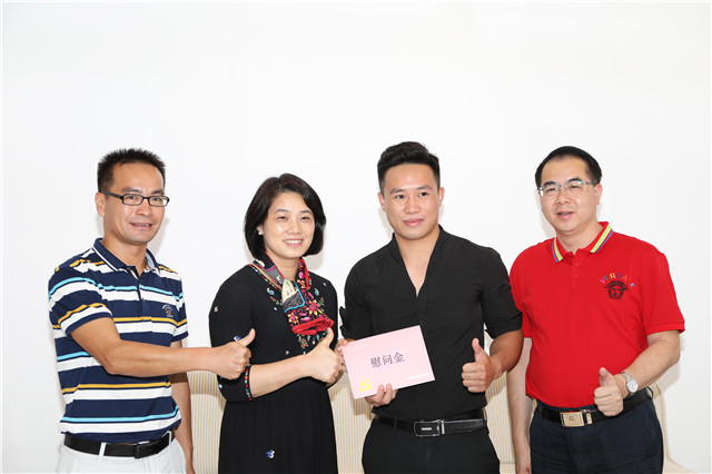 7月6日上午,橫欄鎮(zhèn)黨委書記馮金怡在橫欄鎮(zhèn)政府黨委樓接見(jiàn)了這名英雄,并將見(jiàn)義勇為的慰問(wèn)金親自送到他手上。“你救下的不僅僅是一個(gè)孩子,更是一個(gè)家庭,你給整個(gè)社會(huì)帶來(lái)了滿滿正能量,向你致敬?!蔽<标P(guān)頭見(jiàn)大義,馮金怡對(duì)賈合強(qiáng)的行為給予了肯定,并表示這是社會(huì)精神文明的體現(xiàn),為他義不容辭的救人行為點(diǎn)贊。 “我上去以后發(fā)現(xiàn)這孩子很懂事,他才3歲,但是他一直在安慰媽媽不要哭?!被貞浧甬?dāng)時(shí)的驚險(xiǎn)場(chǎng)景,賈合強(qiáng)首先想到的還是孩子,“當(dāng)?shù)皖^看到樓下有群眾自發(fā)高舉床褥保護(hù)我的安全,自己也很感動(dòng)。另外,我還要感謝消防員,看到他們來(lái)了以后,心里頓時(shí)覺(jué)得安定下來(lái)?!辟Z合強(qiáng)謙遜說(shuō)道,這是一場(chǎng)全社會(huì)的合力救援,大家的齊心協(xié)力,給了他力量。