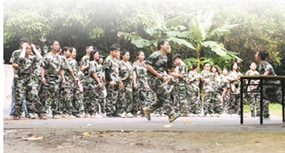 ▲一公司員工穿高仿軍服拓展集訓,已被查處。 被訪者提供