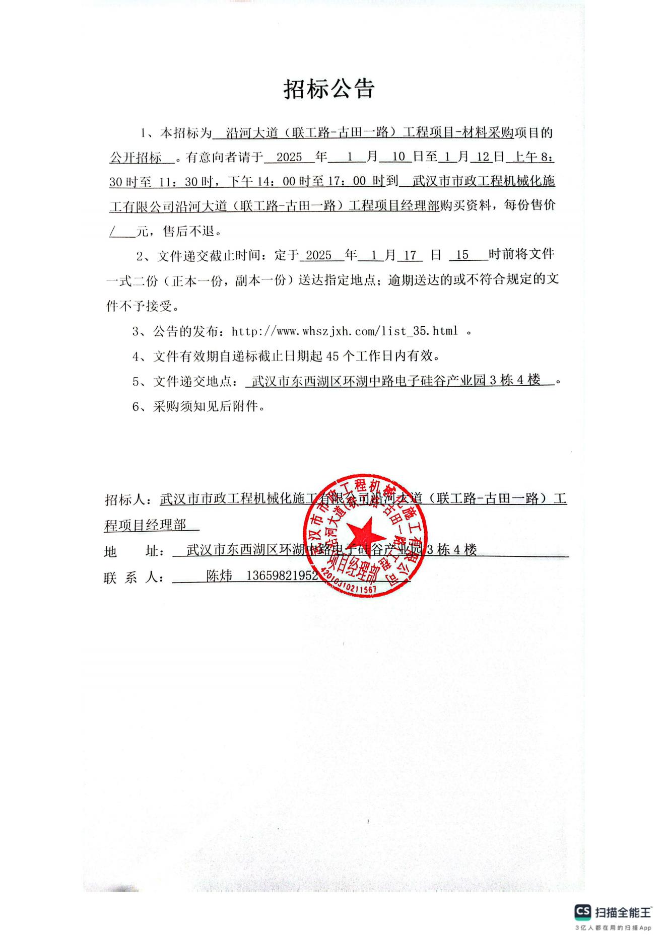 沿河大道(聯(lián)工路-古田一路)工程-材料采購(gòu)招標(biāo)公告