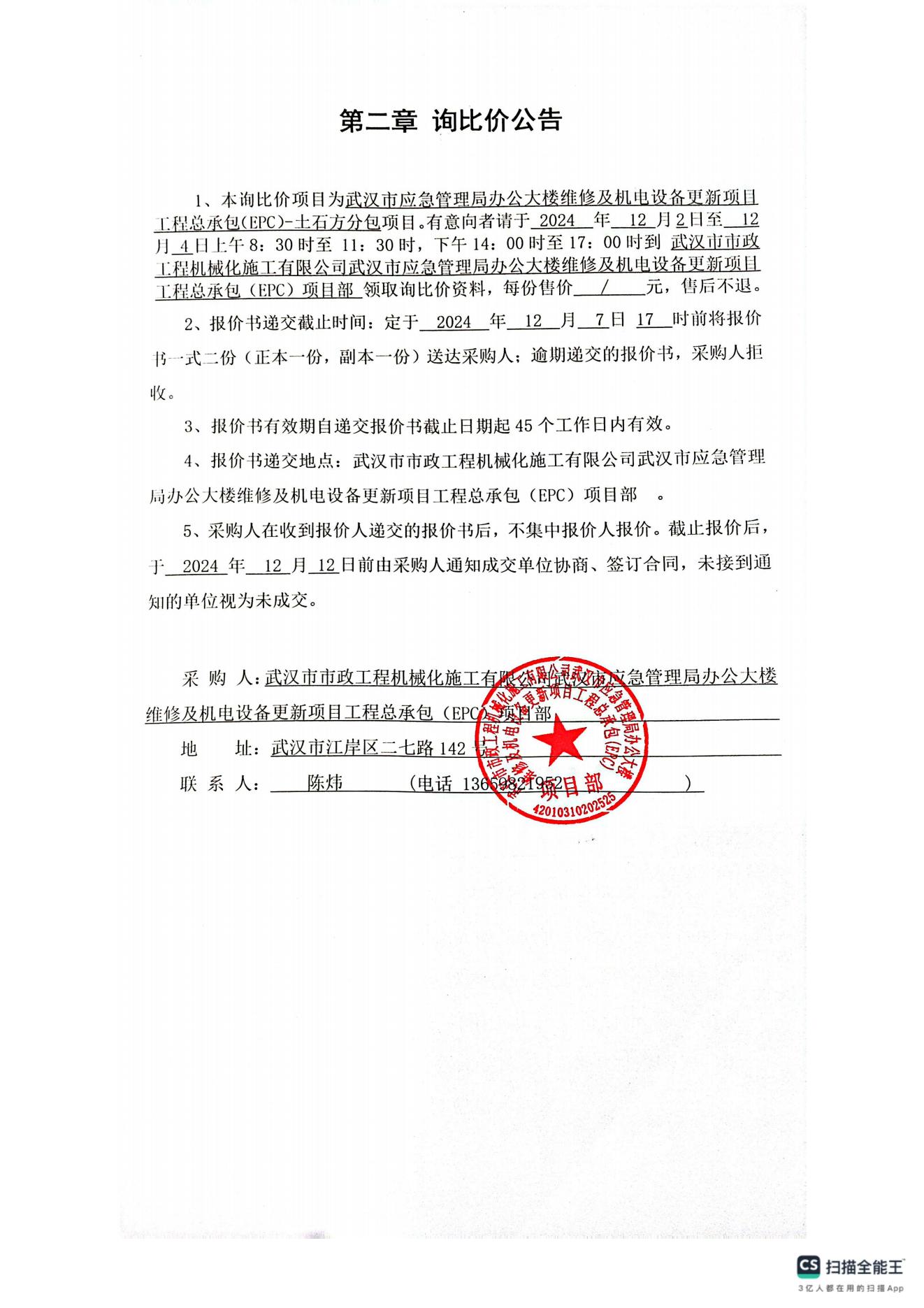 武漢市應(yīng)急管理局辦公大樓維修及機(jī)電設(shè)備更新項目工程總承包(EPC) -土石方分包詢價公告