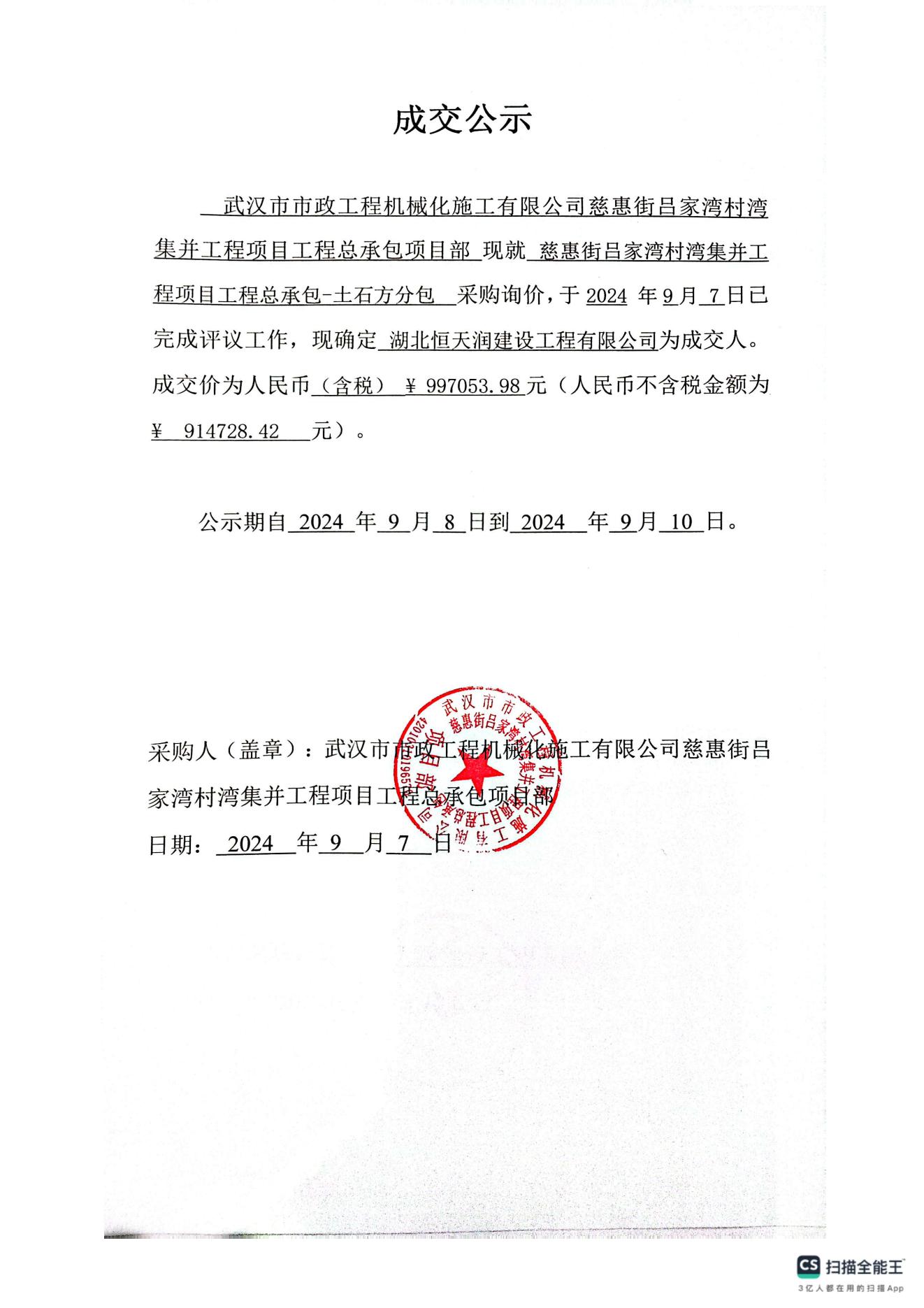 慈惠街呂家灣村灣集并工程項(xiàng)目工程總承包-土石方分包成交公示