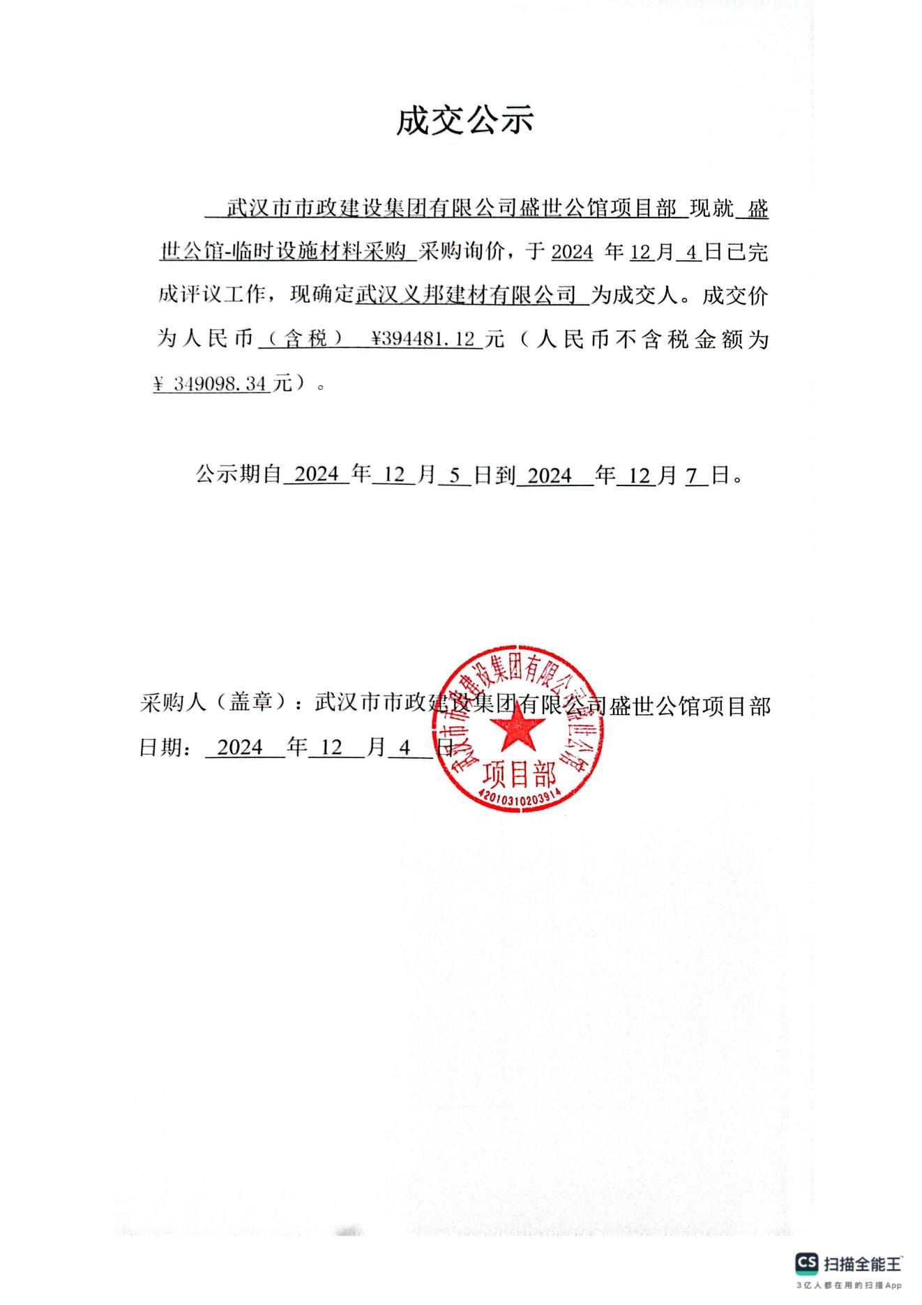 盛世公館-臨時(shí)設(shè)施材料采購(gòu)成交公示