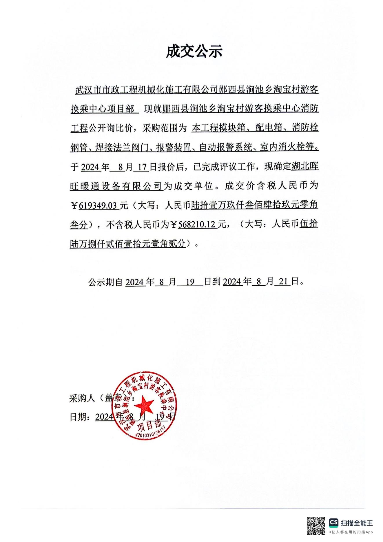 鄖西縣澗池鄉(xiāng)淘寶村游客換乘中心消防 工程成交公示