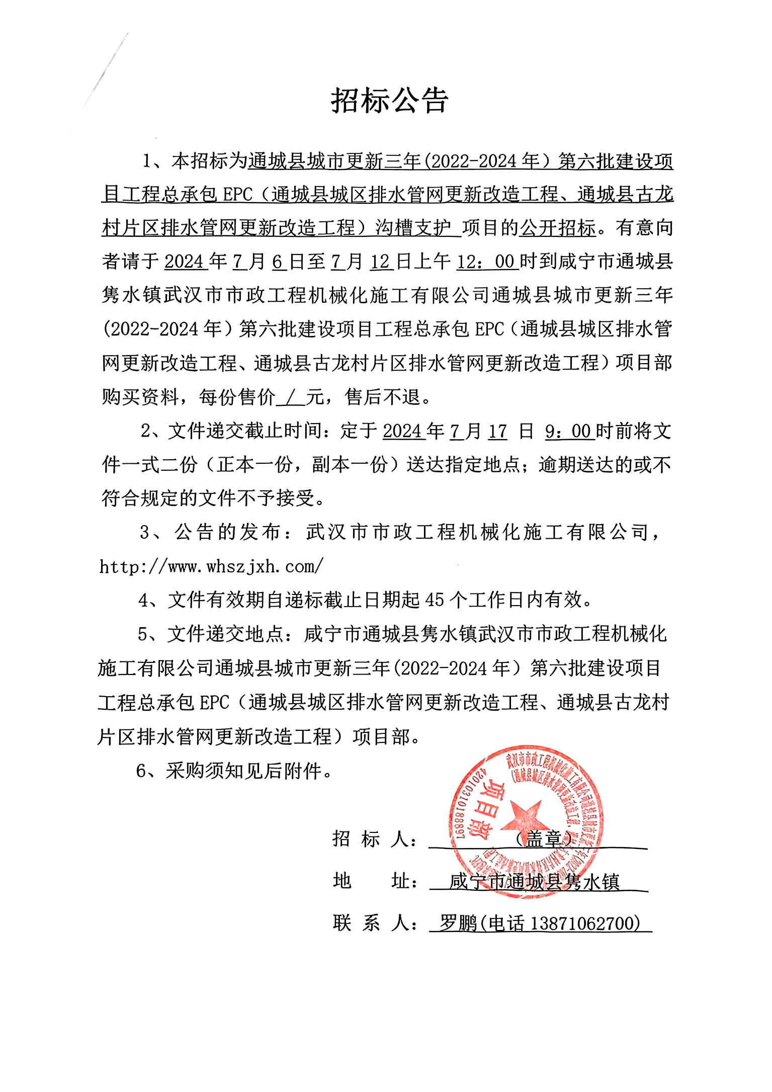 通城縣城市更新三年(2022-2024年)第六批建設(shè)項(xiàng)目工程總承包EPC(通城縣城區(qū)排水管網(wǎng)更新改造工程、通城縣古龍村片區(qū)排水管網(wǎng)更新改造工程)工程溝槽支護(hù)工程招標(biāo)公告