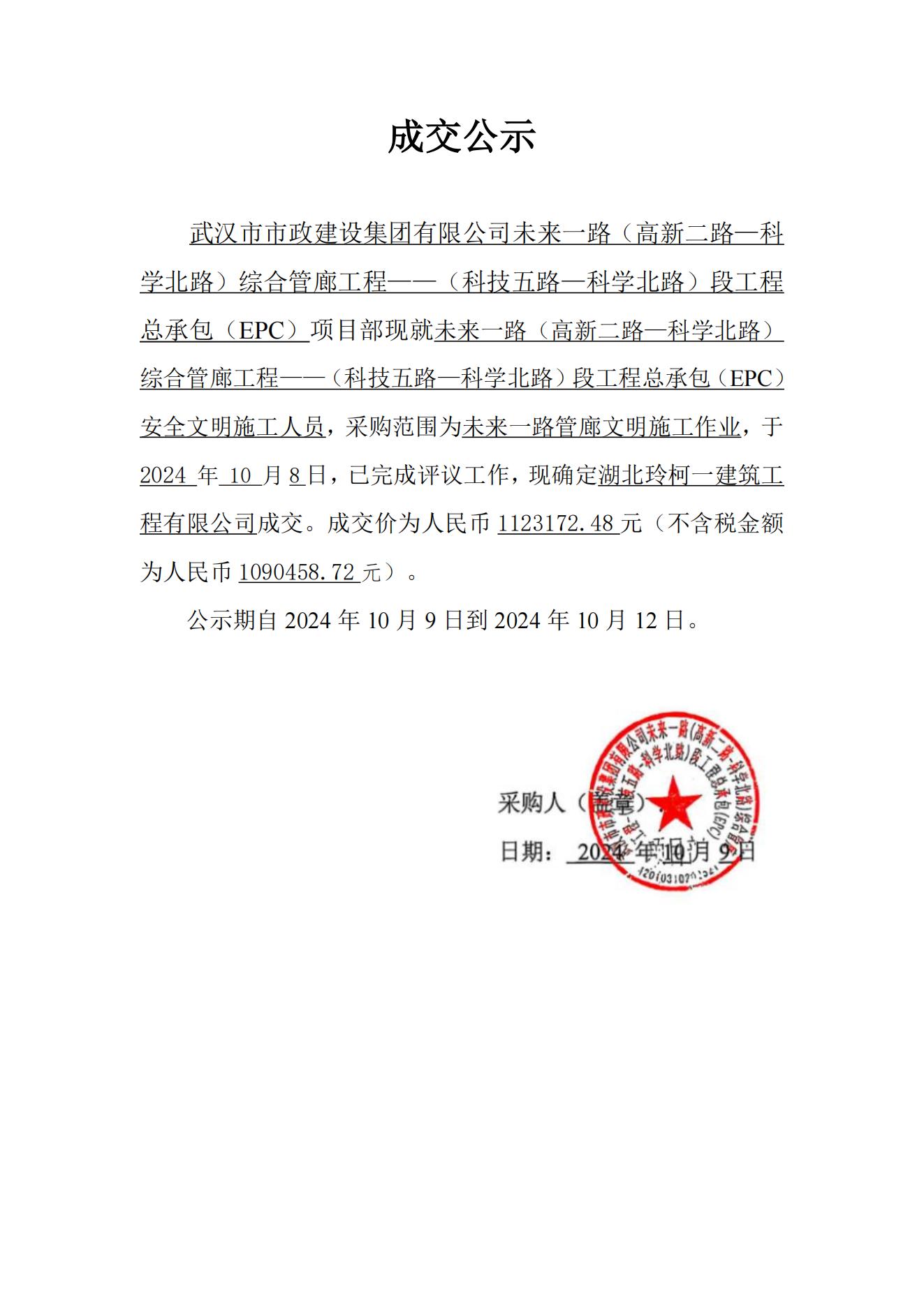 未來一路(高新二路—科學(xué)北路)綜合管廊工程——(科技五路—科學(xué)北路)段工程總承包(EPC)安全文明施工人員成交公示