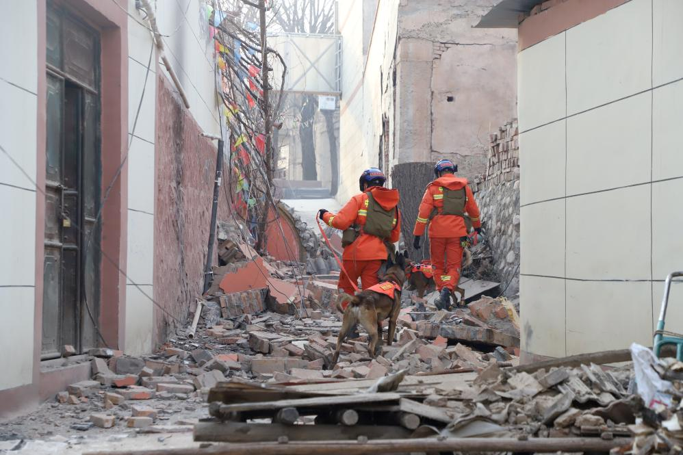 12月19日,甘肅省森林消防總隊(duì)特勤大隊(duì)在積石山縣大河家鎮(zhèn)組織開展救援工作。(甘肅省森林消防總隊(duì)供圖 新華社發(fā))