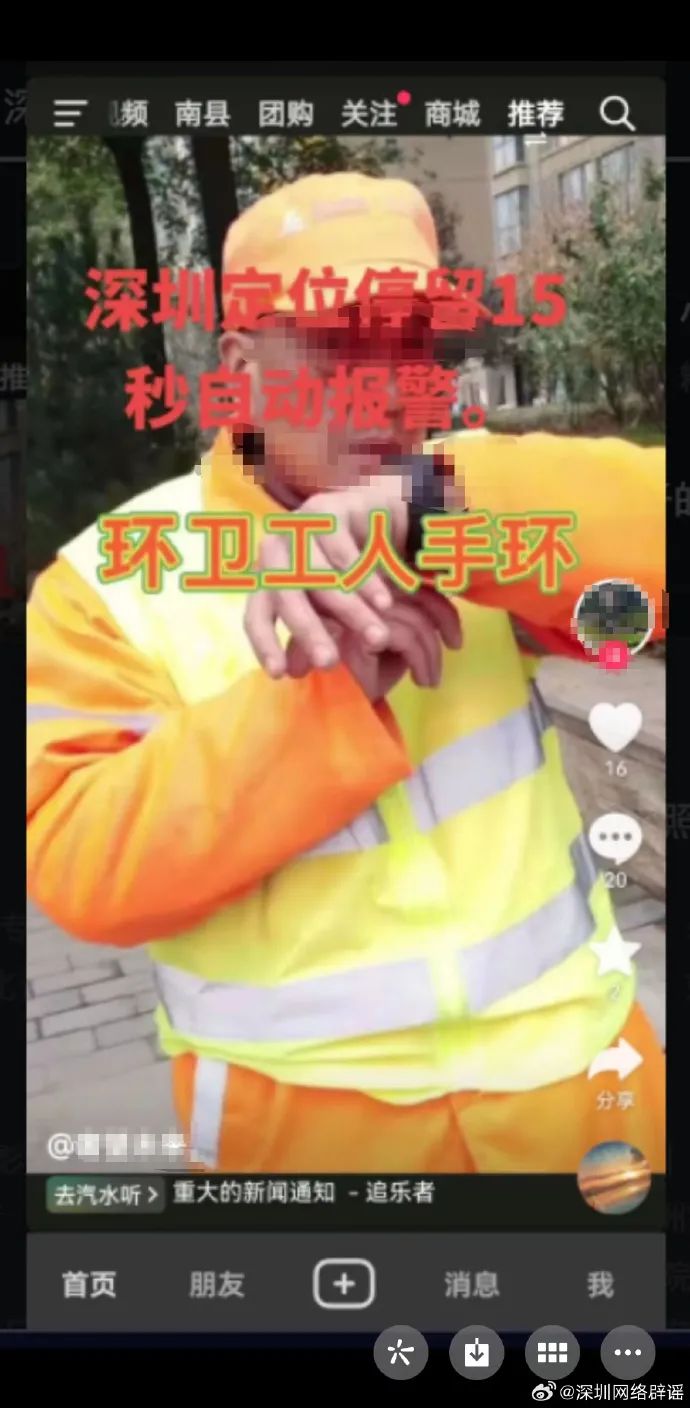深圳環(huán)衛(wèi)工人定位手環(huán)停留15秒自動(dòng)報(bào)警?官方回應(yīng)