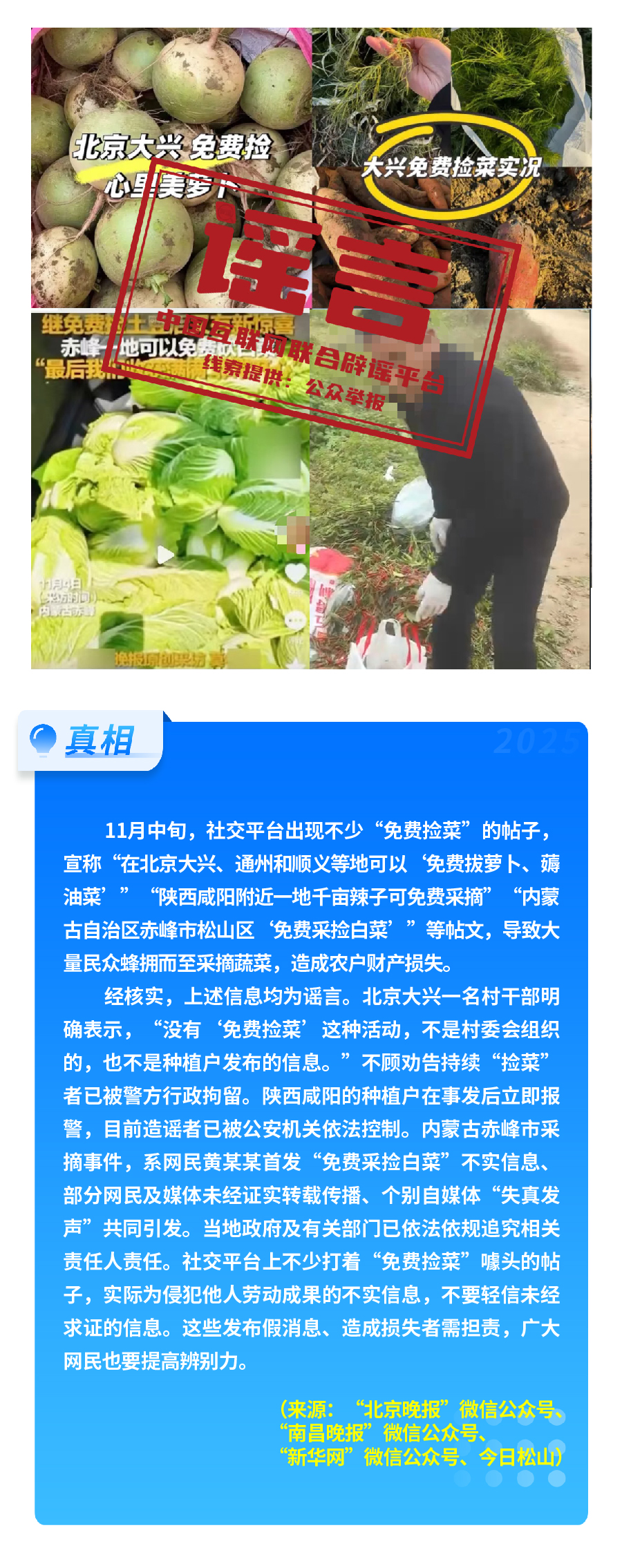 此外,“免費撿菜”傳言在多地蔓延,北京大興、內(nèi)蒙古赤峰、陜西咸陽等地,均有群眾因不實信息誤導涌入農(nóng)田哄搶,導致農(nóng)戶財產(chǎn)受損;“充‘劣質(zhì)電’會導致新能源汽車自燃”的說法,毫無科學依據(jù),實為造謠者為博流量惡搞。另有“高見觀潮”“象視汽車”“987瘋狂奶爸”等賬號在多平臺編發(fā)涉汽車行業(yè)的虛假信息,惡意抹黑詆毀汽車企業(yè)、汽車產(chǎn)品,損害汽車行業(yè)發(fā)展形象。