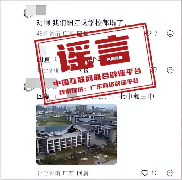 謠言:廣東陽江兩所中學教學樓因臺風坍塌?