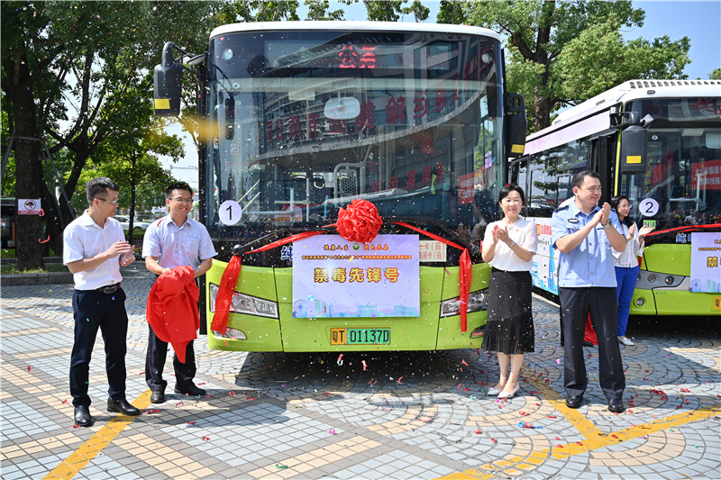 發(fā)車儀式上,中山市禁毒辦相關(guān)負(fù)責(zé)人介紹說,“全民禁毒、人人參與”是中山禁毒工作的特色,公交車具有流動性強(qiáng)、覆蓋面廣、宣傳精準(zhǔn)等優(yōu)勢,利用好公交車廂這一流動的宣傳載體,讓中山公交車輛“化身”禁毒衛(wèi)士,帶領(lǐng)市民在乘車過程中識毒、防毒、拒毒,意義非凡。