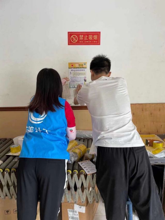 在宣傳過程中,社工派發(fā)宣傳單,并讓其張貼宣傳單,向員工普及毒品的種類、禁毒法律知識,鼓勵郵政快遞企業(yè)員工在日常工作中發(fā)現(xiàn)通過寄遞從事涉毒違法犯罪行為線索后,及時(shí)向郵政管理局或公安禁毒部門舉報(bào)。