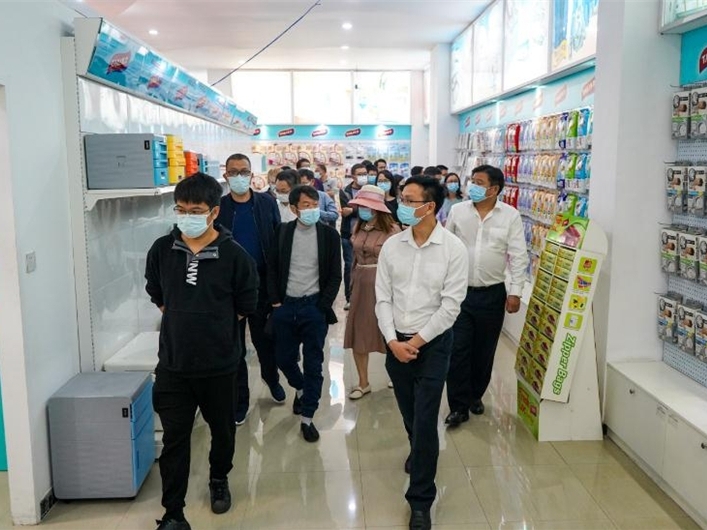 4月25日,中山市互聯(lián)網(wǎng)行業(yè)黨委、中山市網(wǎng)絡(luò)文化協(xié)會一行赴沙溪鎮(zhèn)調(diào)研,現(xiàn)場參觀直播帶貨,了解直播電商業(yè)務(wù)及企業(yè)發(fā)展情況。